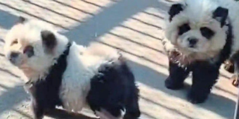 El Zoológico de Taizhou, en la provincia de Jiangsu, China, se metió en serios problemas tras presentar a dos perros de la raza chow chow teñidos de blanco y negro para que parecieran pandas.